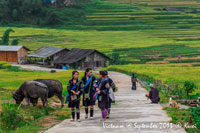 Magnifique des rizières vous attendent pour cette randonnée facile d‘accès. Cette balade est accessible à tous et passe au milieu des rizières en terrasses des vallées de Ta Phin, Muong Hoa, Ban Ho. Très authentique et hors des sentiers battus. Une randonnée pas trop compliquée qui vous fera découvrir trois grande vallées autour de Sapa.