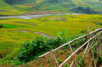 Après le petit déjeuner avec vos hôtes, votre randonnée commencera vers 9h 00, belle marche à travers des rizières luxuriantes, des forêts de bambou,visite d‘une jolie chute d‘eau et du fameux pont suspendu, ensuite, découverte du village de Giang Ta Chai où cohabitent des Daos rouges et H‘mong noirs. Déjeuner pique nique. Arrivée au fond de la vallée de Muong Hoa où vous aurez de superbes vues panoramiques sure sa fameuse chaine de montagne de Hoang Lien. Retour à Sapa en voiture. Possibilité de prendre une douche avant de reprendre le mini-bus qui vous ramènera à Lao Cai afin d‘y prendre le train de nuit pour Hanoi..